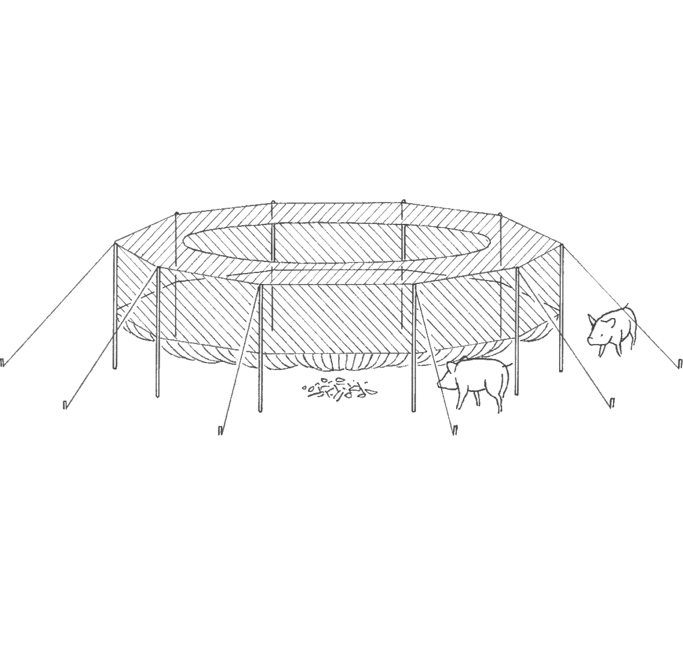 With no slamming gate or metal walls, our stealthy trap won’t cause panic or create trap-shy pigs.